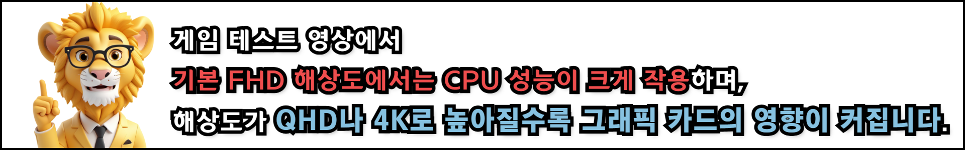 이는 QHD나 4K 해상도에서는 그래픽 카드의 성능이 게임 성능에 더 큰 영향을 미치기 때문입니다.